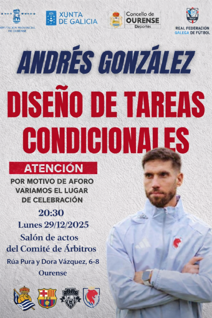 Ademáis, antes da charla, Afiador recoñecerá a labor de varios delegados do fútbol ourensán. Raúl Rois, responsable da @futgal_oficial en Ourense, explicará en detalle as funcións dun delegado.